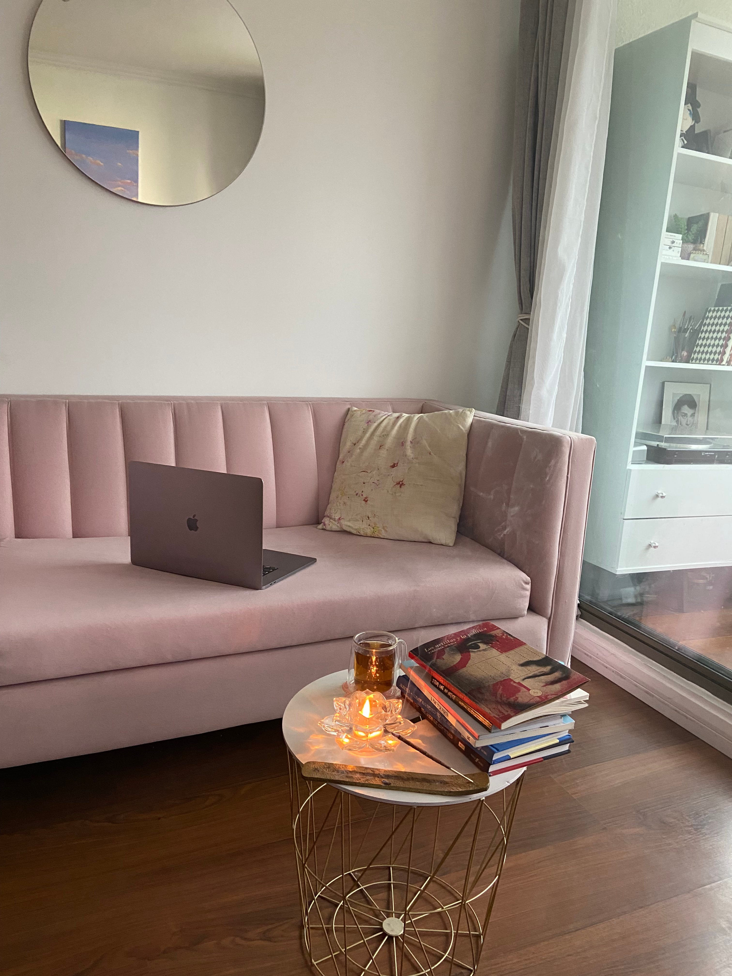 I’m writing from my living room, lying on the pink sofa I love so much. It’s a typical Sunday: the apartment smells of incense, I’m sipping chamomile tea, and soft, calming melodies play in the background.