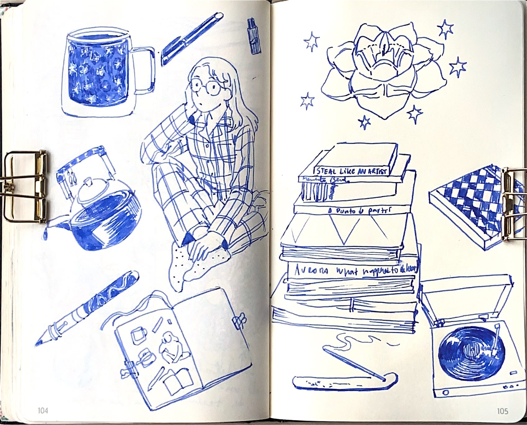 Tomorrow I’m going to stay at a friend’s house to look after her cats while she travels for a week, and it suddenly dawned on me that, for the first time in five years, I’ll be completely alone in another city. I’ve been thinking a lot about the walks I’d like to take and the dates I’d like to have with myself during those days. I want to capture everything that catches my eye in my sketchbook. I’d like to pay attention to everything: overheard conversations, the architecture of unfamiliar streets, and moments of people watching. Maybe, in doing so, I’ll find inspiration to create new stories.